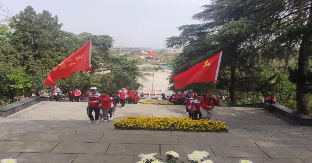 “桃花红雨英雄血,碧海丹霞志士心,今日神州看奋起,陵园千古慰忠魂。”在高高耸立的革命烈士纪念塔前,全体师生整齐列队,庄严肃穆,面向烈士纪念塔前向长眠在这里的革命烈士致以崇高的敬意,全体师生默哀,深切缅怀那些为了新中国抛头颅、洒热血的先烈们。
